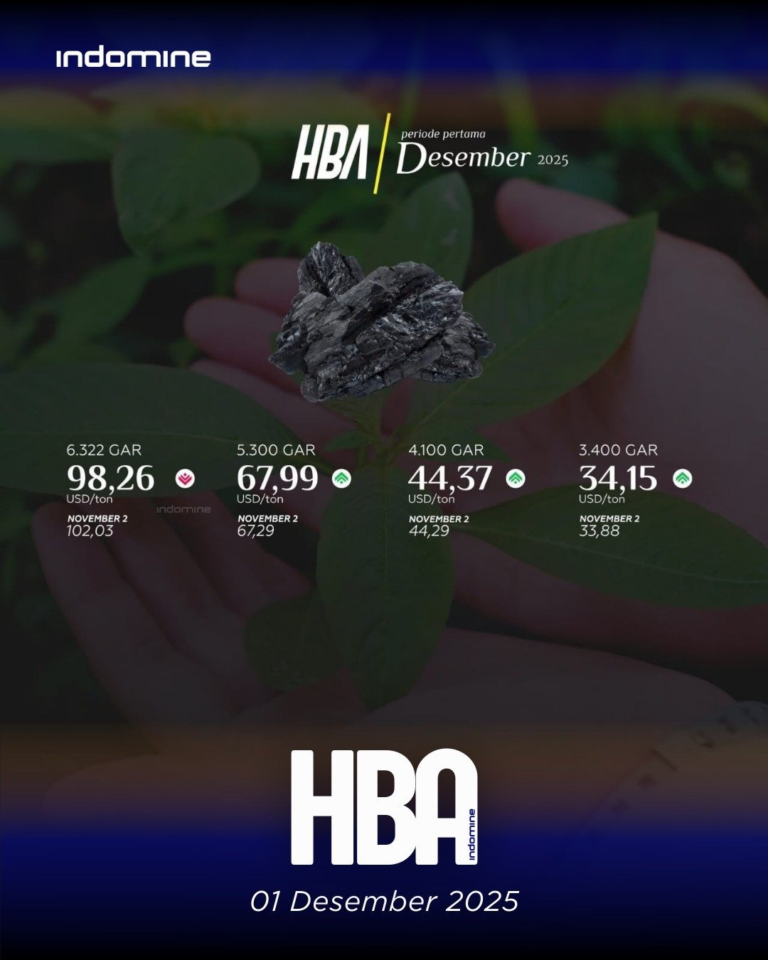 ESDM – 01 Desember 2025 — Direktorat Jenderal Minerba resmi mengumumkan Harga Batubara Acuan (HBA) Periode Pertama Desember 2025, memperlihatkan pergerakan harga yang berbeda antar level kalori. Tiga jenis GAR—5300, 4100, dan 3400—kompak naik, sementara GAR 6322 kembali terkoreksi. Berikut adalah harga batubara acuan periode pertama Desember 2025: